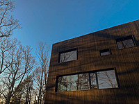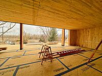 Situated on a hillside in Saugerties, NY, this home frames a beautiful landscape with Timber Age™ Ponderosa Pine CLT in a comfortable, highly energy-efficient space. AG Architects is excited to offer the Hemlock Passive House design as the basis for a stock home design focused on efficiency and affordability.